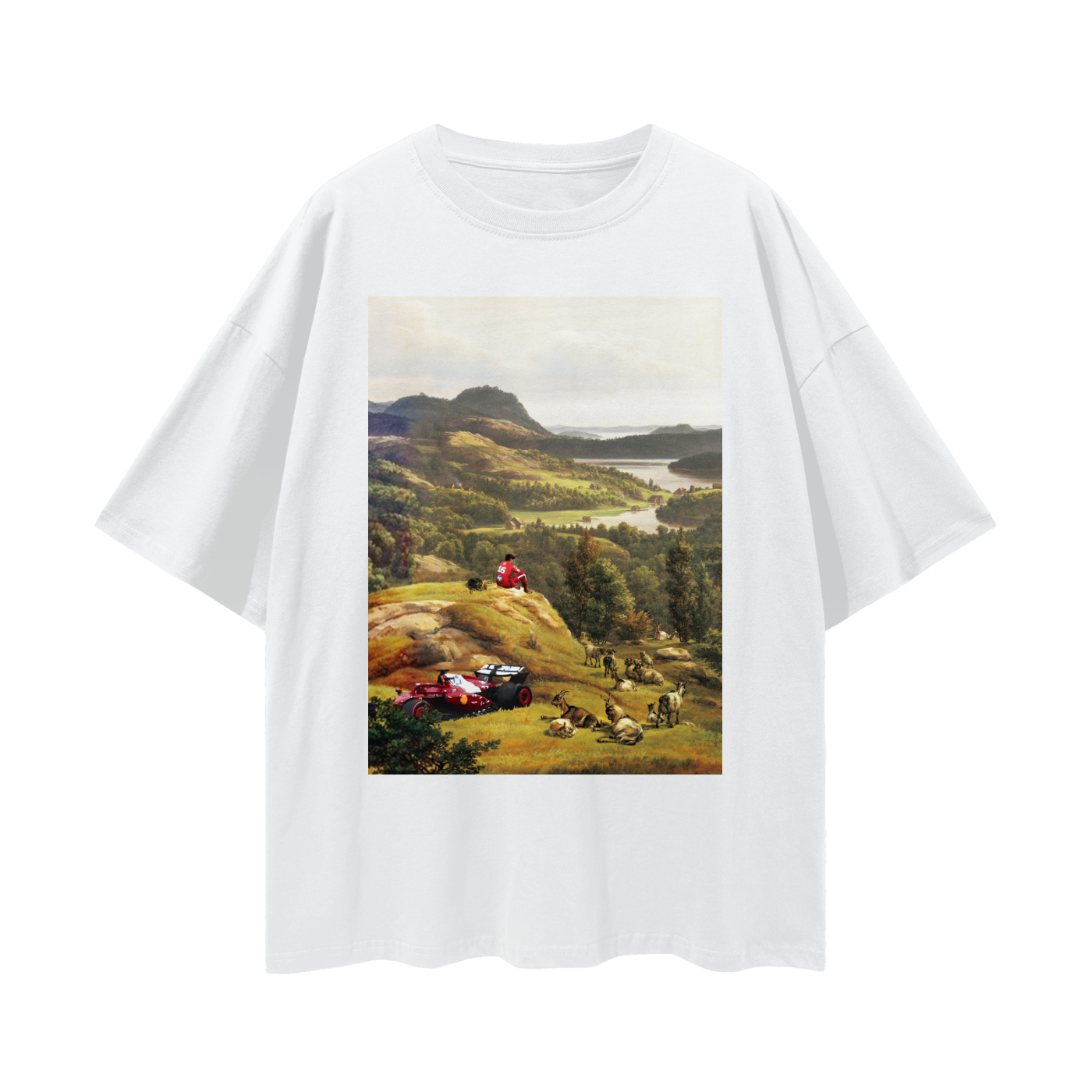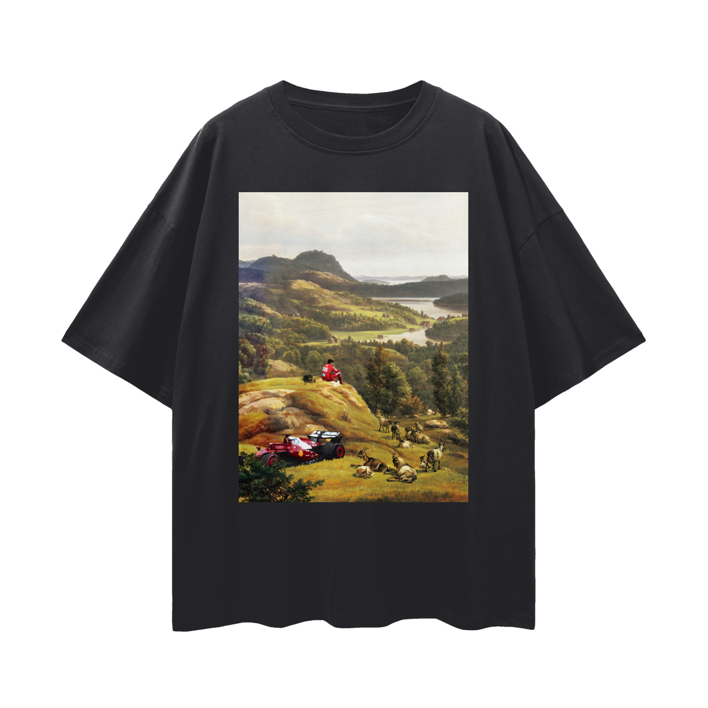 The hills are alive with the sound of... TecPro barriers being mended? Charles really just looked too good on that damn hill, we had to make art about it. Thus, another Charles Leclerc tee was born. You really can never have too many.