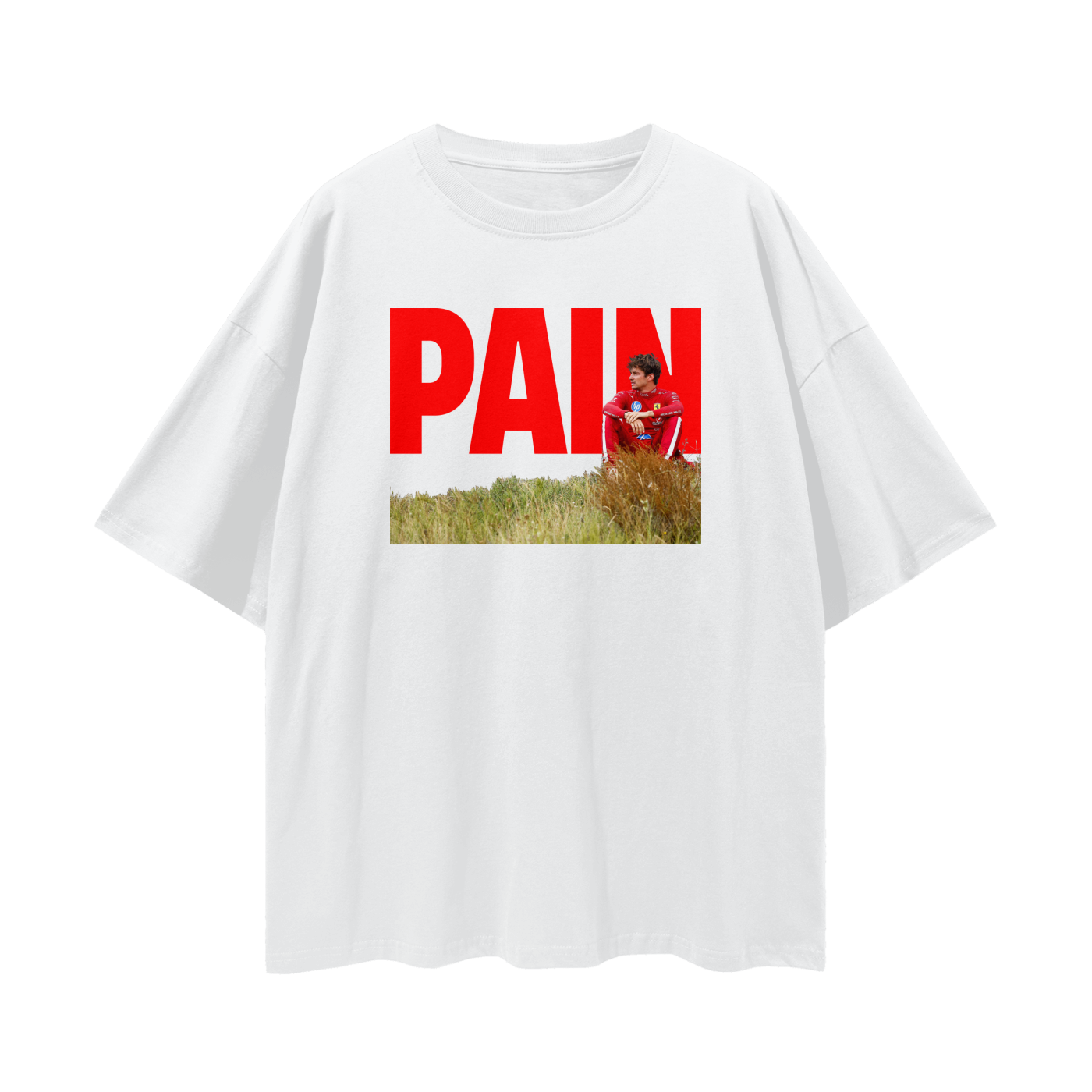 If you're a Tifosi, you're used to it: PAIN. But rarely has it ever looked so cinematic and windswept as it did on that hill in Zandvoort. This Charles Leclerc tee is for the Ferrari fans who like to wear their heart on their sleeve.